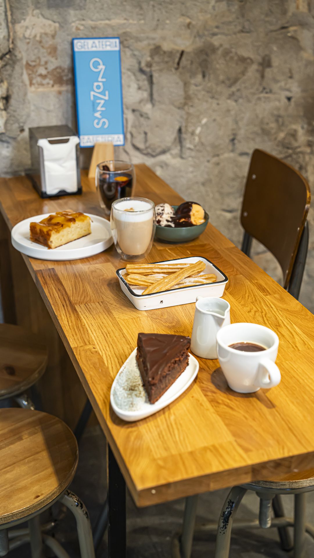Churros, pasteles artesanos, carrot cake, baklava, Sacher y dulces variados de temporada con opciones vegetarianas en Barcelona, cerca de la Sagrada Familia